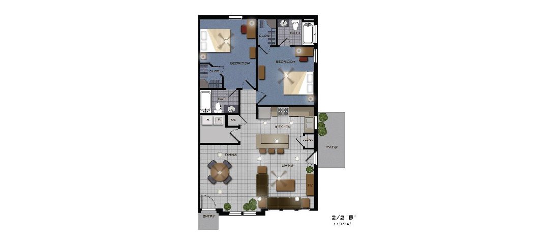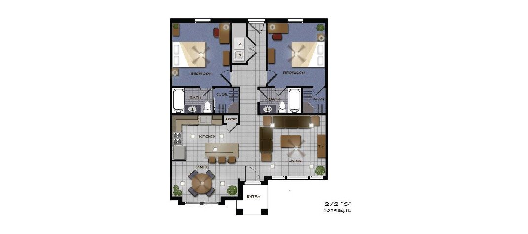 Click on the floor plans below for more information regarding our 2 bedroom 2 bathroom floor plans.