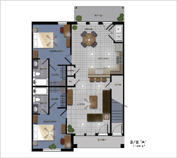Richmond Ridge Townhomes offer 3 different and unique 2/2 floor plans for our residents. All designs feature granite counter tops, ceramic floors, 9 foot ceilings and warm color schemes.